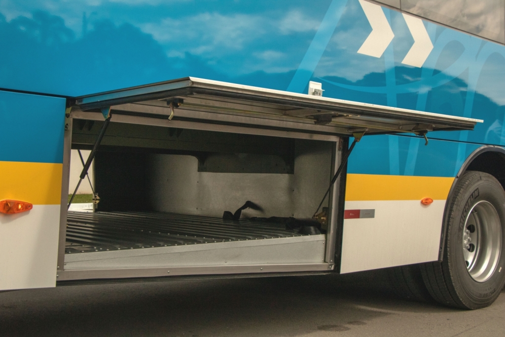 The vehicles supplied to Viação Nossa Senhora do Amparo feature Mercedes-Benz OF 1721 chassis, 13,500mm total length and capacity for 50 passengers seated in reclining seats of 1,025mm. The buses have air conditioning system, LED lighting with indirect lights for comfort and sophistication, Mobile Seat Device for wheelchair users, destination electronic displays, pneumatic door opening system, InSwing front doors and Door Brake security system, optional multimedia system with two monitors as well as for the monitoring system.